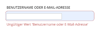 Ungültiger Wert Benutzername oder E-Mail-Adresse